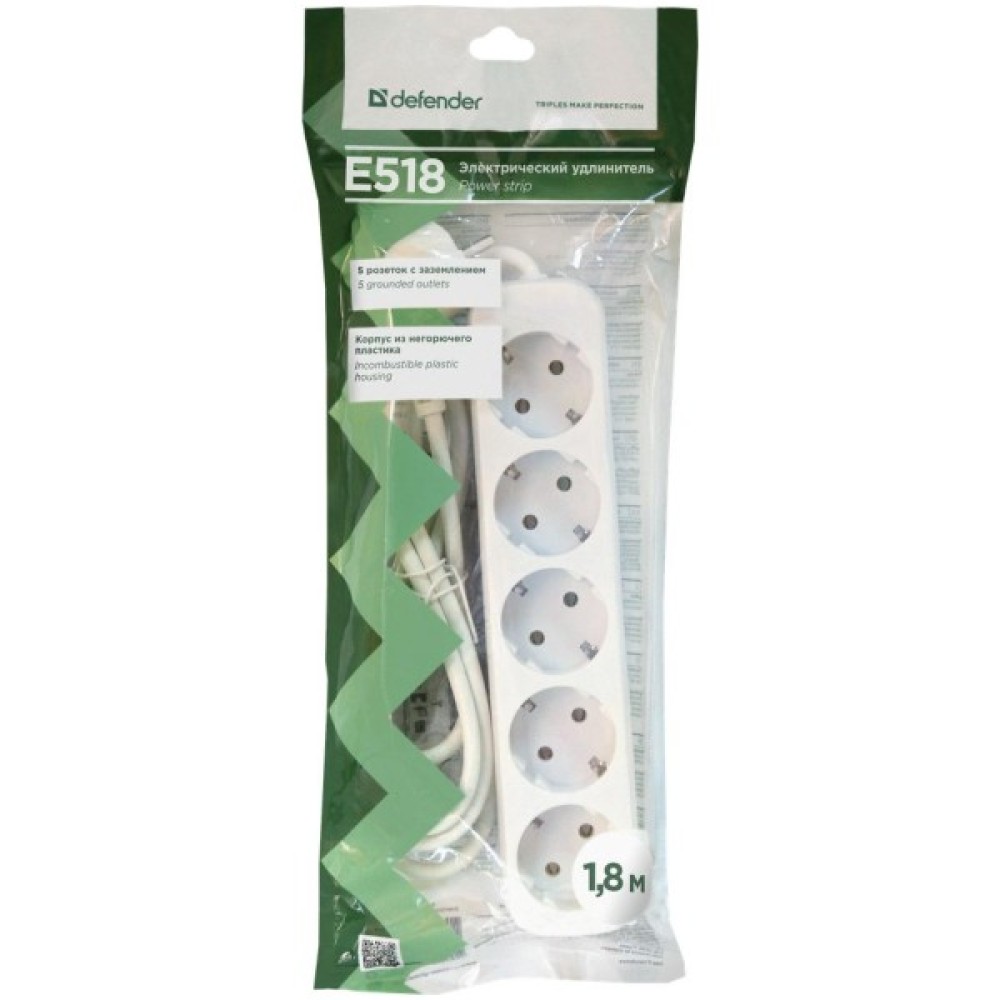 Мережевий подовжувач Defender E518 1.8 m 5 роз white (99229)