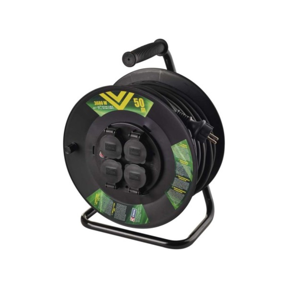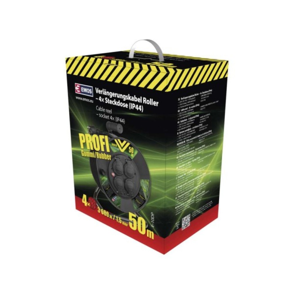Подовжувач на котушці P08250 від чеського виробника Emos. Має перетин кабелю 1,5 мм що обумовлює підвищену стійкість до навантажень від використання приладів з великим енергоспоживанням.