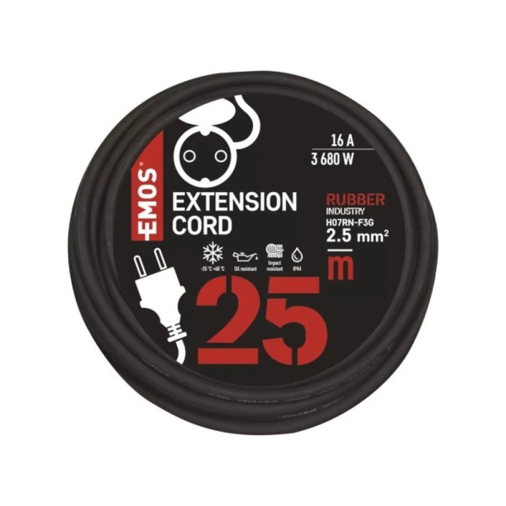 Подовжувач P01825R від чеського виробника EMOS. Компактна переносна розетка із заземленням дає змогу швидко під'єднати прилад для використання на відстані. Розетка подовжувача рейтинг захисту IP44.