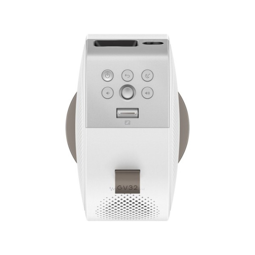Проєктор BenQ GV32 є компактним і універсальним LED-проєктором, розробленим для мобільного використання в домашніх умовах, зокрема для проєкції на стелю чи стіну з мінімальним налаштуванням, що робить його ідеальним рішенням для розваг у спальні, гуртожитку чи обмеженому просторі.