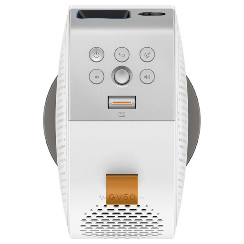 Відкрийте для себе можливості зручного керування та заряджання проєктора GV50, які забезпечують неперевершену зручність та універсальність для розваг, незалежно від того, де ви знаходитесь — у приміщенні чи на вулиці.