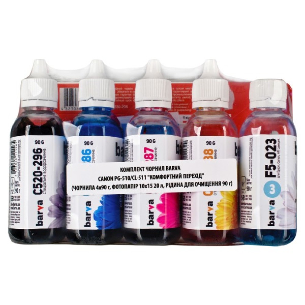 Комплект чорнил "Комфортний перехід" Canon PG-510/CL-511 спеціальні 4х90 г + фотопапір 10х15 20 л + рідина 90 г Barva (CPGI520-CMP)