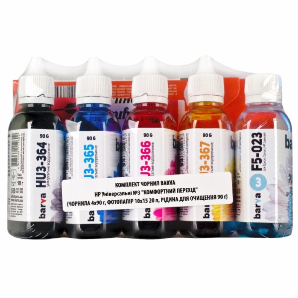 BARVA HP Universal №3 (HU3-CMP) являє собою сумісне чорнило, яке відрізняється високою світло - і водостійкістю, широкою кольоровою гамою і хорошою чіткістю одержуваних відбитків. Зображення надовго збереже яскравість, завдяки впровадженню у виробництво чорнил новітніх наукових розробок.