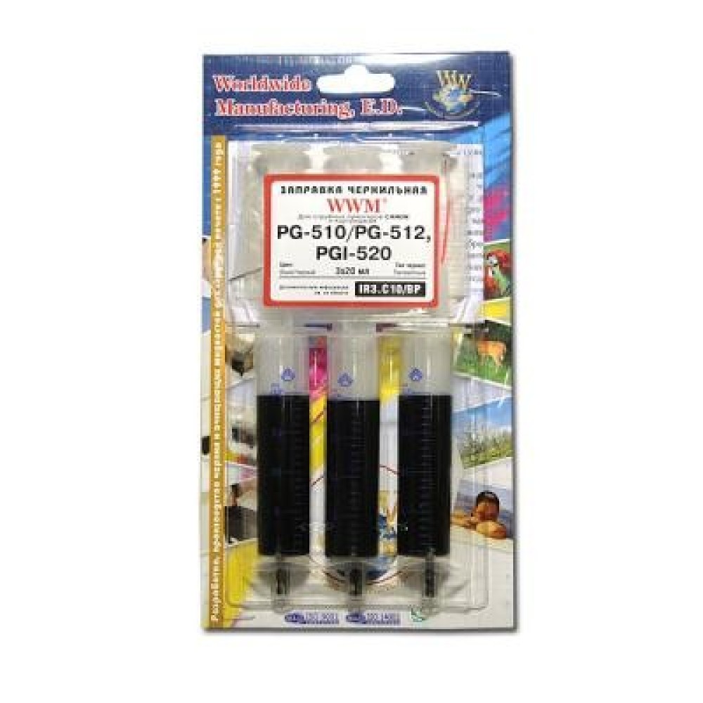 Заправочний, набір, WWM, Canon, PG510PG512, 3х20, мл, Black, Pigmented, IR3C10BP