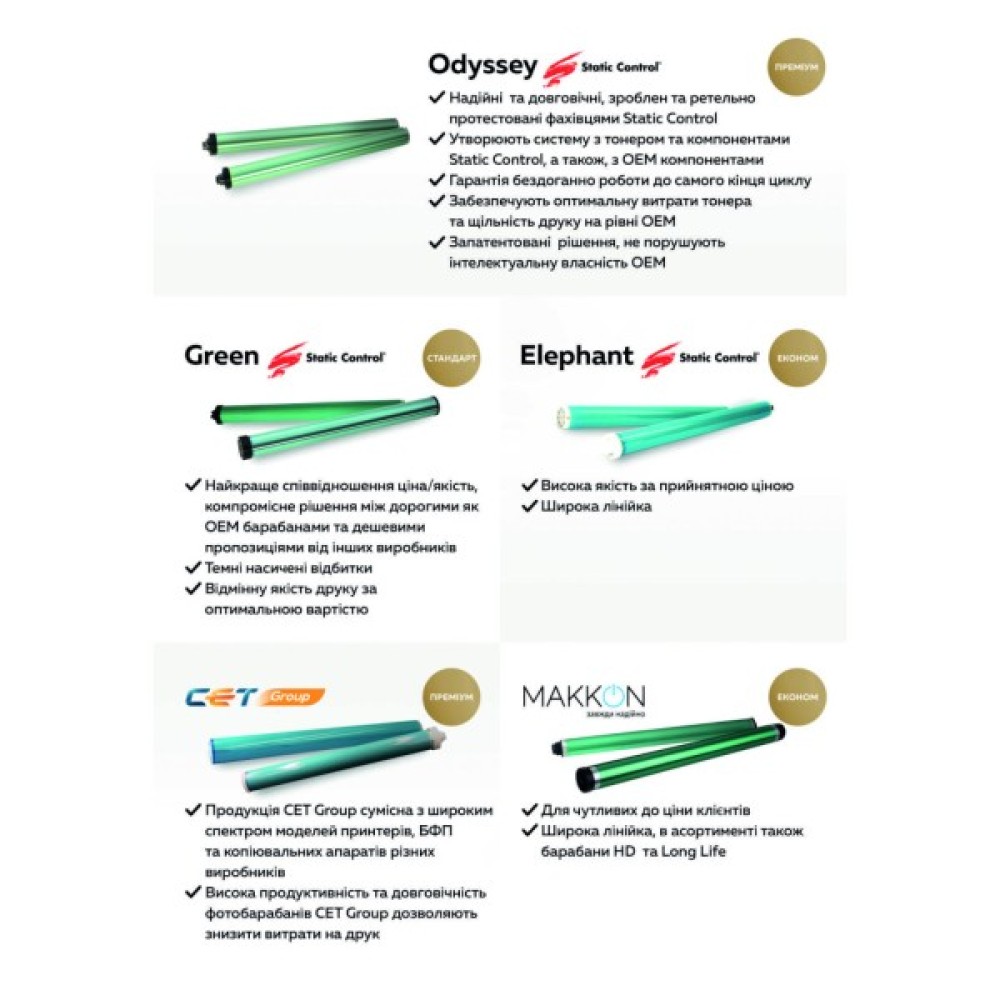 · Широка лінійка, в асортименті також барабани HD та Long Life