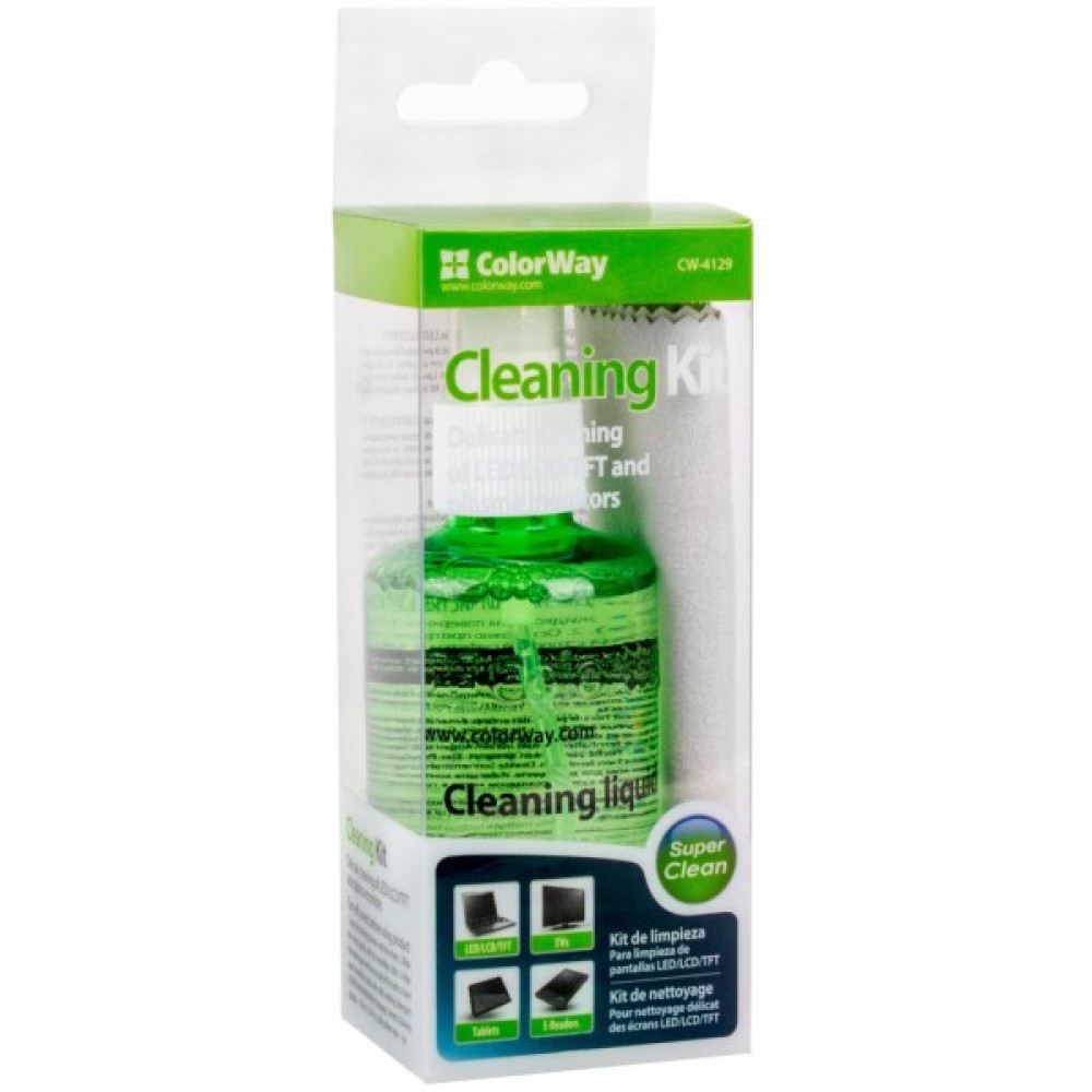 Набор ColorWay 2в1 (CW-4129) призначений для чищення плоских дисплеїв, телевізорів, ноутбуків, CD/DVD дисків. Двостороння серветка з мікрофібри високоефективно видалить пил, відбитки пальців і бруд.