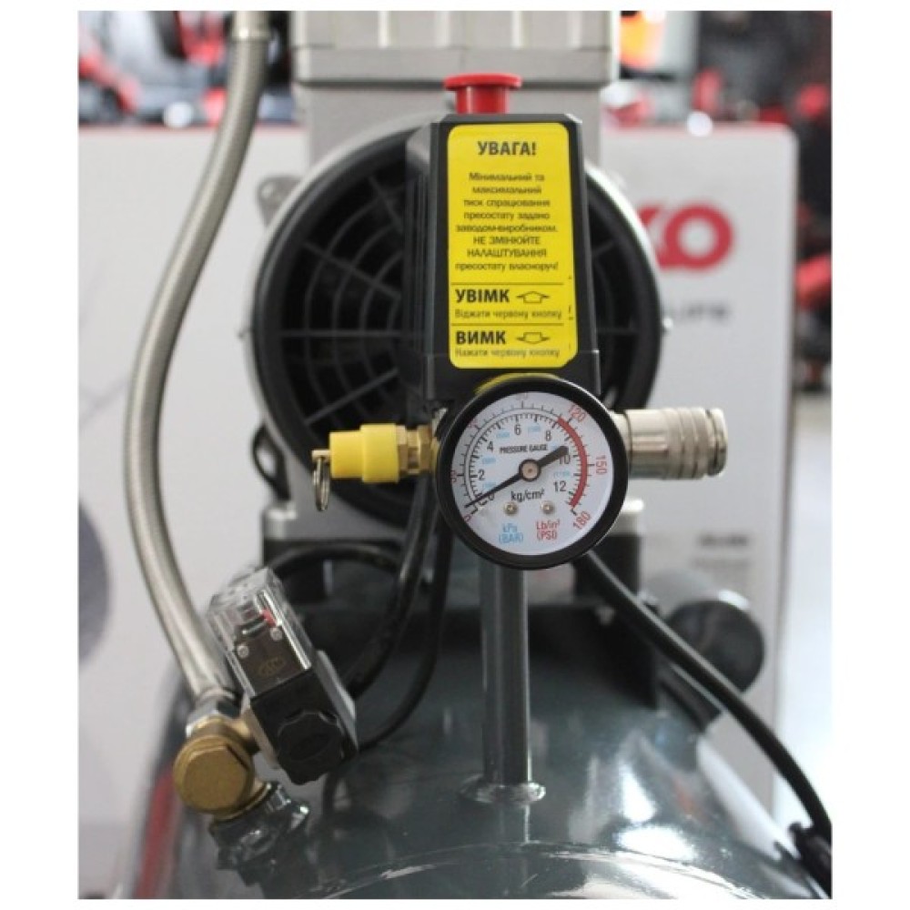 Компресори оснащені міцним двигуном, що значном підвищує ресурс та довговічность. На компресорах встановлена надійна автоматика, пара колес для зручного транспортування, регулятор тиску та два виходи з швидкороз'ємними з'єднаннями. Кожен з компресорів проходить детальну передпродажну перевірку. Компресор обладнано електронним клапаном скидання тиску, вмонтованим в головку. Відмінно підходить для експлуатації в умовах, де потрібна в першу чергу висока якість повітря - аерографія, медицина, продувка відповідальних елементів машин, тощо.