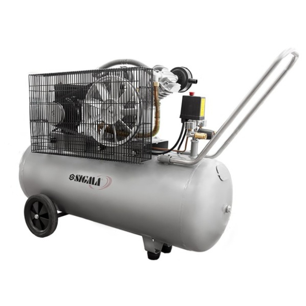Компресор Sigma із двоциліндровим оливним компресором і пасовим приводом призначений для нагнітання стисненого повітря з подальшим його подаванням під тиском у різні типи пневмоінструменту та пневмообладнання.