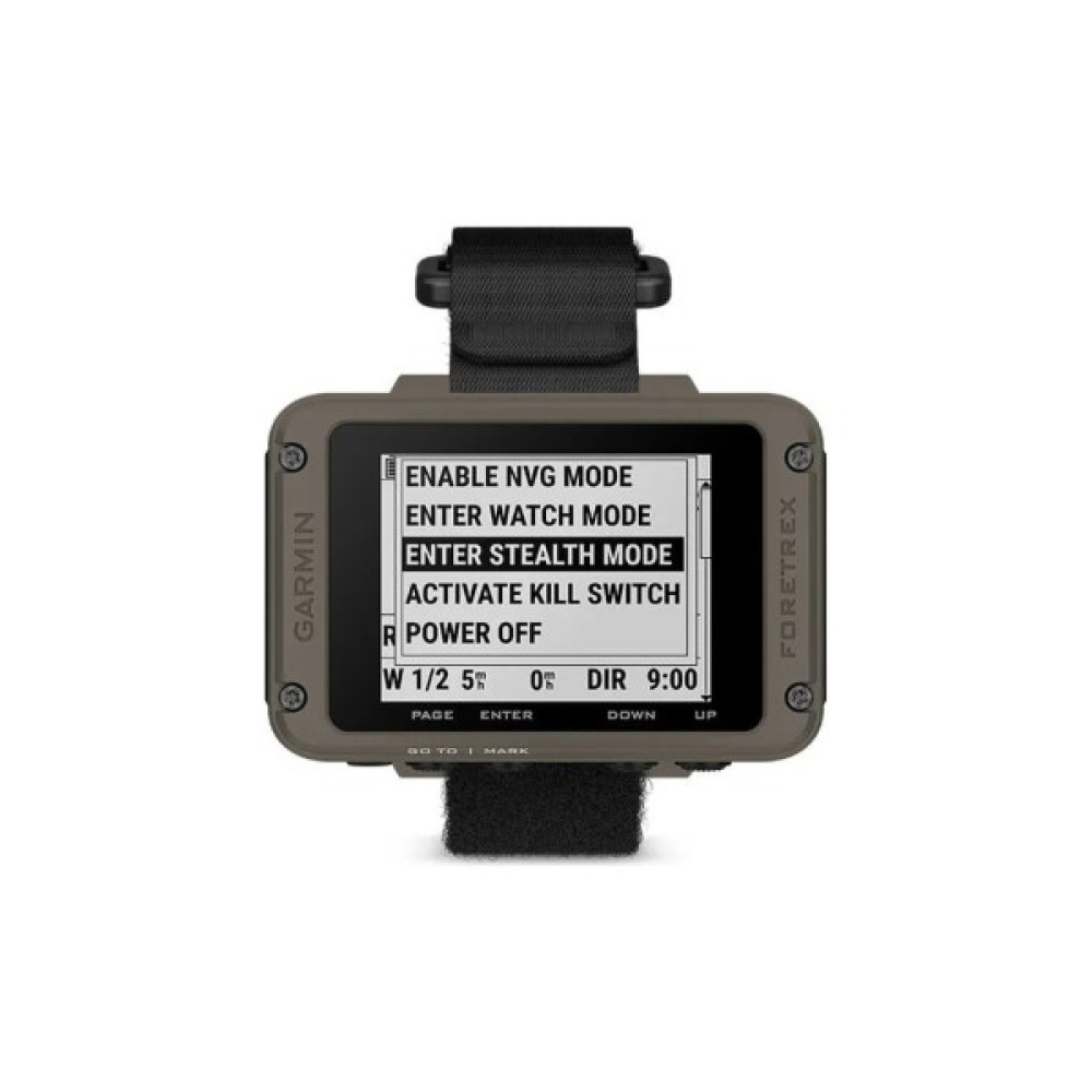 Тактичні функціїВикористовуйте прихований режим Stealth Mode, щоб припинити збереження та передачу GPS-даних та вимкнути бездротове з'єднання. У ситуації небезпеки кнопка аварійного вимкнення Kill Switch дозволяє миттєво видалити усі користувацькі дані з пам’яті пристрою. У режимі для стрибків з парашутом Jumpmaster можна розрахувати точки скидання відповідно до військових настанов.