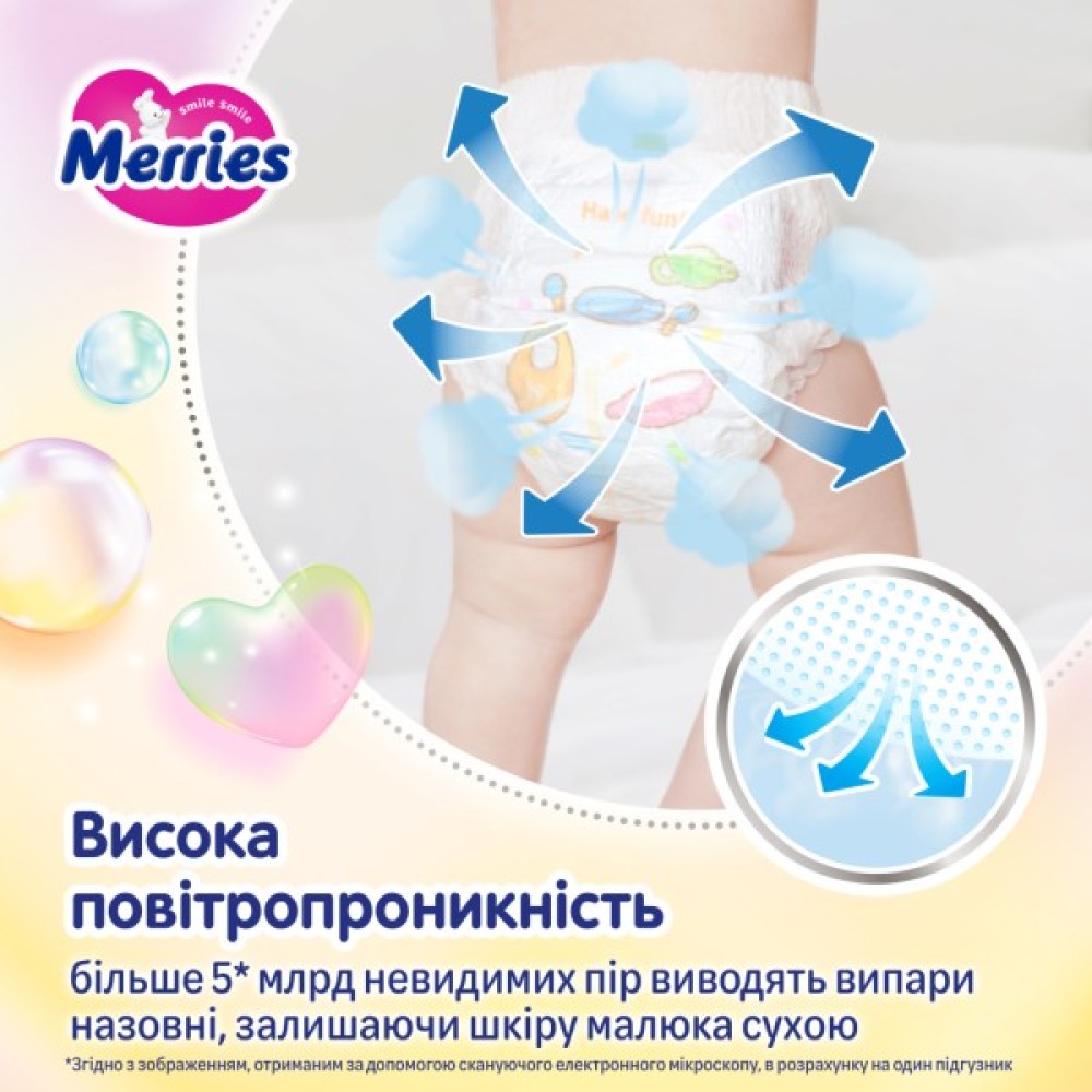 Яскравий дизайн із зайчиком підніме настрій вашому малюку, а практична стрічка для утилізації зробить зберігання використаних трусиків легким і зручним. Універсальні для обох статей, Merries ідеально підходять як для дівчаток, так і для хлопчиків завдяки рівномірному розподілу поглинального шару. Насолоджуйтеся якістю та турботою з Merries!