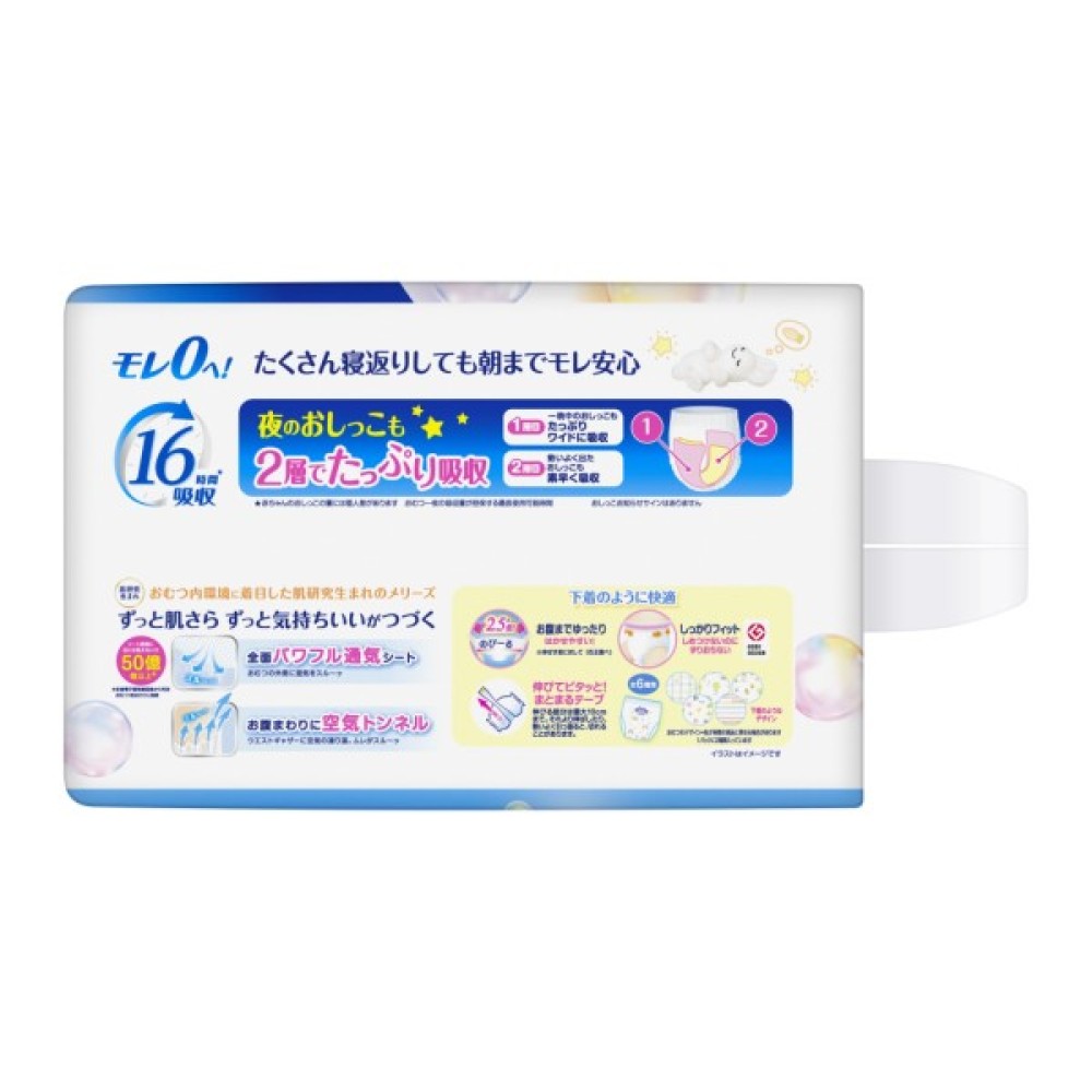 Підгузки-трусики Merries розміру XXL (15-28 кг) спеціально створені для забезпечення комфорту та захисту вашого малюка, пропонуючи рішення для спокійного сну без протікань. Унікальні подвійні поглинальні шари утримують вологу, забезпечуючи надійний захист навіть уночі, коли малюк активно рухається.