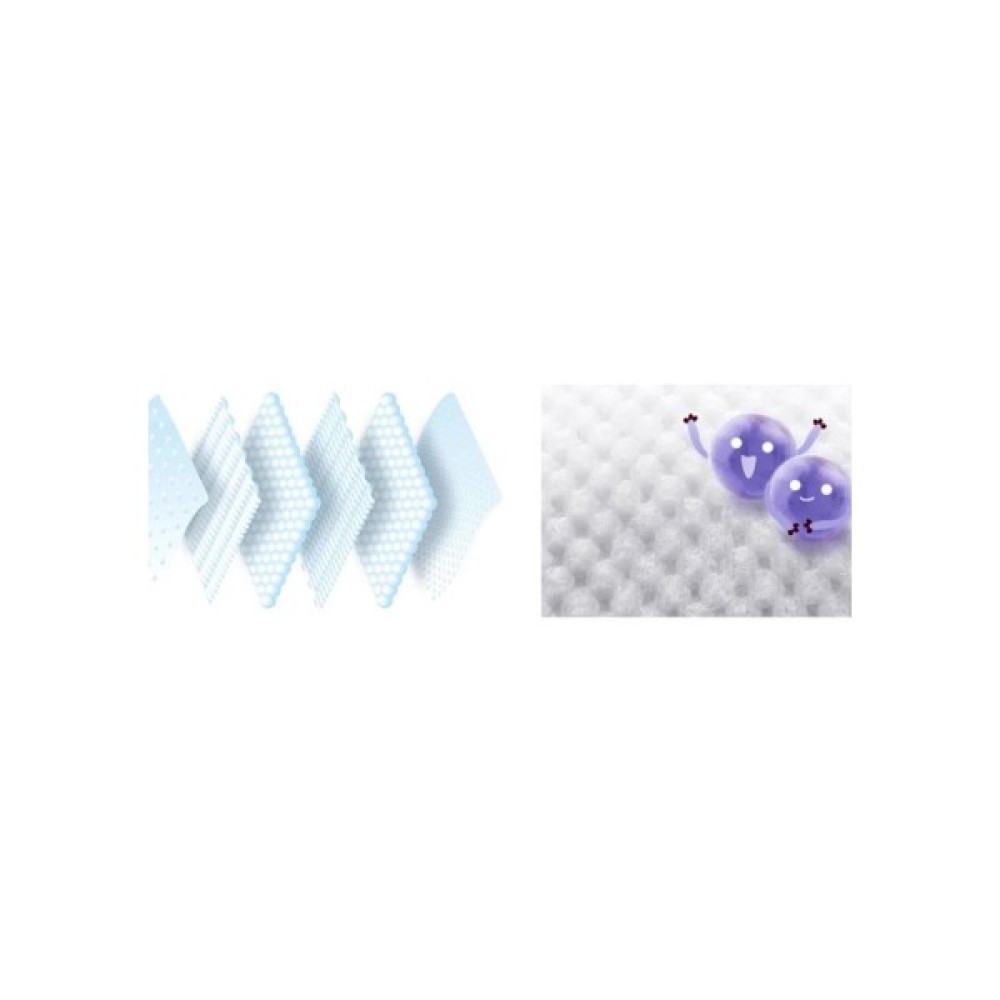 Завдяки ультратонкому дизайну, підгузки не обмежують свободу рухів дитини, дозволяючи активно досліджувати світ без зайвого дискомфорту. Усередині підгузки наповнені чистою органічною бавовною та японськими наповнювачами, які забезпечують миттєве поглинання вологи. Лише за 7-10 секунд шкіра залишається сухою, запобігаючи виникненню висипань.