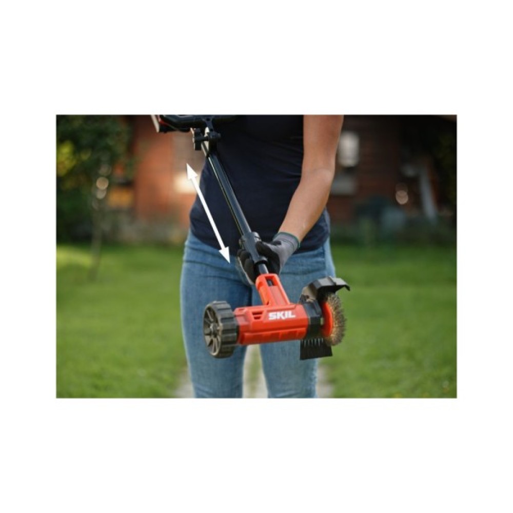 SKIL 0660 «20V Max» (18V) – це потужна бездротова щітка для легкого та екологічно чистого видалення бур’янів. 0660 швидко та ефективно видаляє стійкі бур’яни, мох та дрібні рослини між бруківкою на вашій доріжці чи під’їзній доріжці. Вам більше не потрібно видаляти бур’яни вручну, ризикуючи подряпати коліна та поранити спину, або використовувати пестициди, які шкодять навколишньому середовищу. Щітка для бур’янів має максимальний діаметр диска 125 мм, а щітки можна легко замінити завдяки системі блокування шпинделя. Телескопічне регулювання висоти забезпечує комфортну роботу в будь-якій ситуації. Чітке керівництво завдяки вбудованому індикатору щітки дозволяє легко підтримувати лінію з очищеним проміжком. Крім того, напрямне колесо забезпечує оптимальну стійкість. Завдяки ексклюзивній конструкції SKIL «Easy Storage» цей інструмент займає мінімум місця після використання та його можна зручно зберігати. SKIL 0660 CA постачається з металевою щіткою та гачком «Easy Storage». Система «PWRCORE 20™» складається з передової технології акумуляторів та зарядних пристроїв, а також інноваційних функцій, яких ви не знайдете більше ніде. Наприклад, наша запатентована технологія охолодження акумулятора «KEEPCOOL™», яка збільшує час роботи до 25% та подвоює термін служби акумулятора.