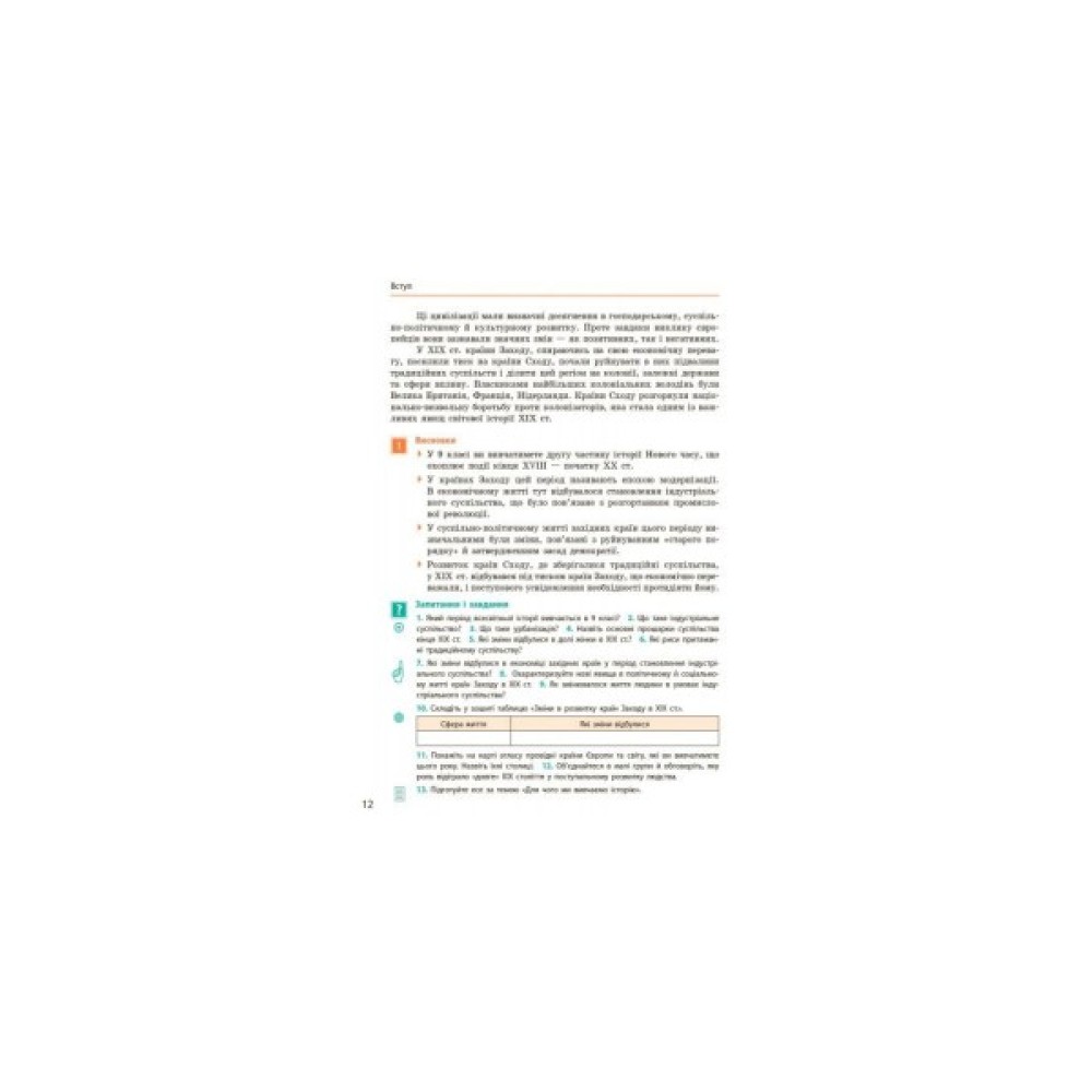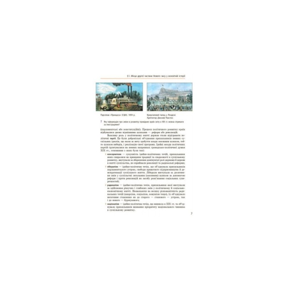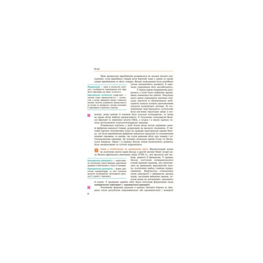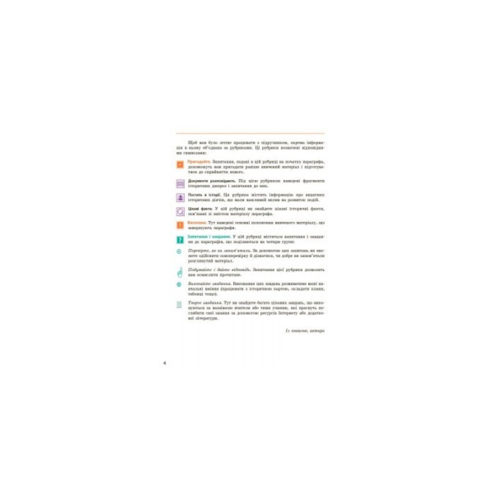 • Схеми, таблицi та iлюстрацiї унаочнюють текст параграфiв, сприяють його кращому розумiнню. Рiзнорiвневi запитання й завдання допоможуть перевiрити набутi знання та розвиватимуть умiння аналiзувати подiї та висловлювати власну точку зору.