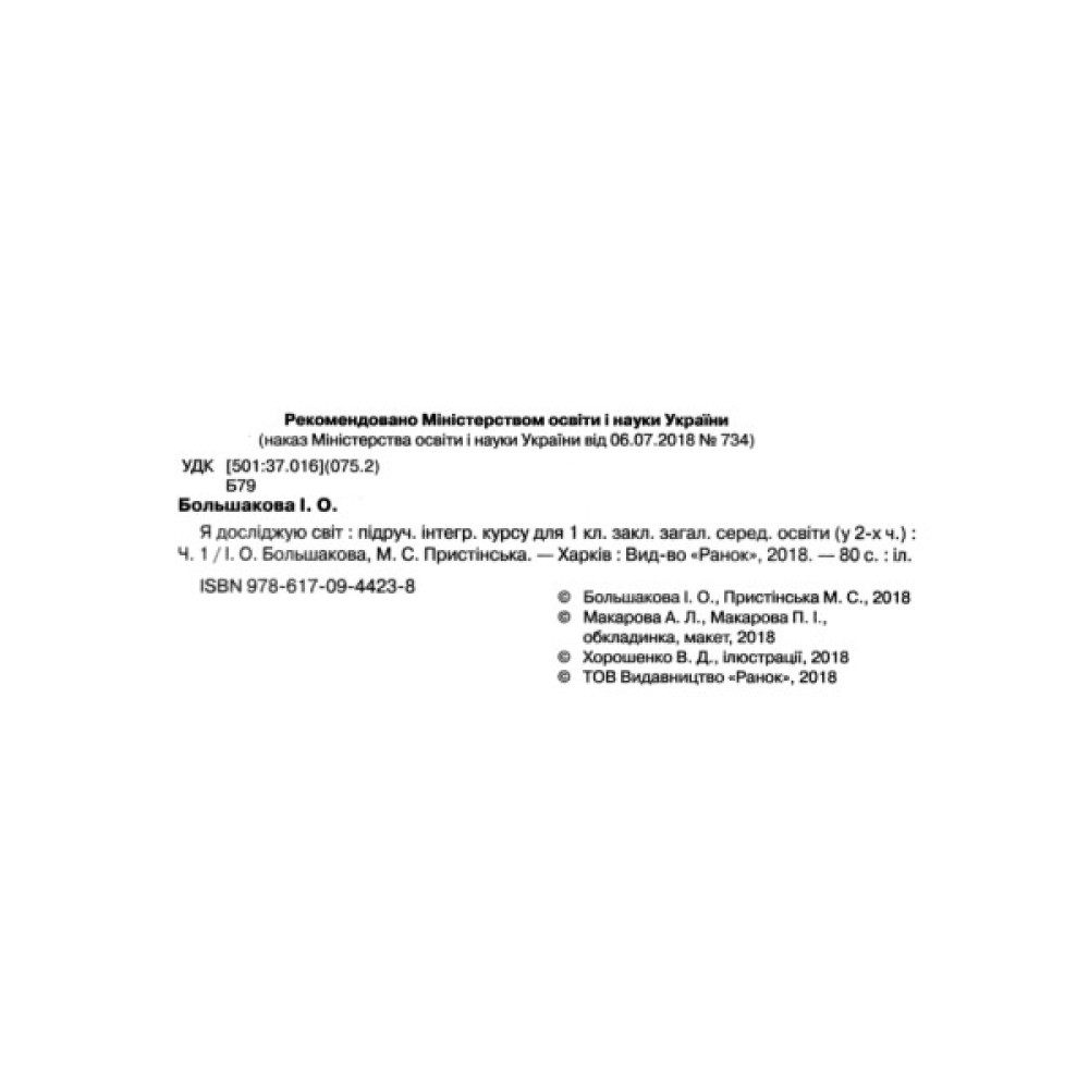 Підручник Я досліджую світ. У 2-х частинах. 1 клас. Частина 1 - І.О. Большакова, М.С. Пристінська Ранок (9786170944238)