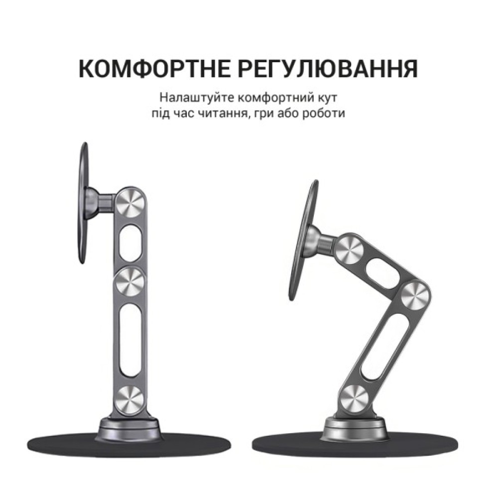 Завдяки магнітному механізму встановлення пристрою на тримачі стає швидким та легким, а обертання на 360 градусів забезпечує повний доступ до вашого пристрою.