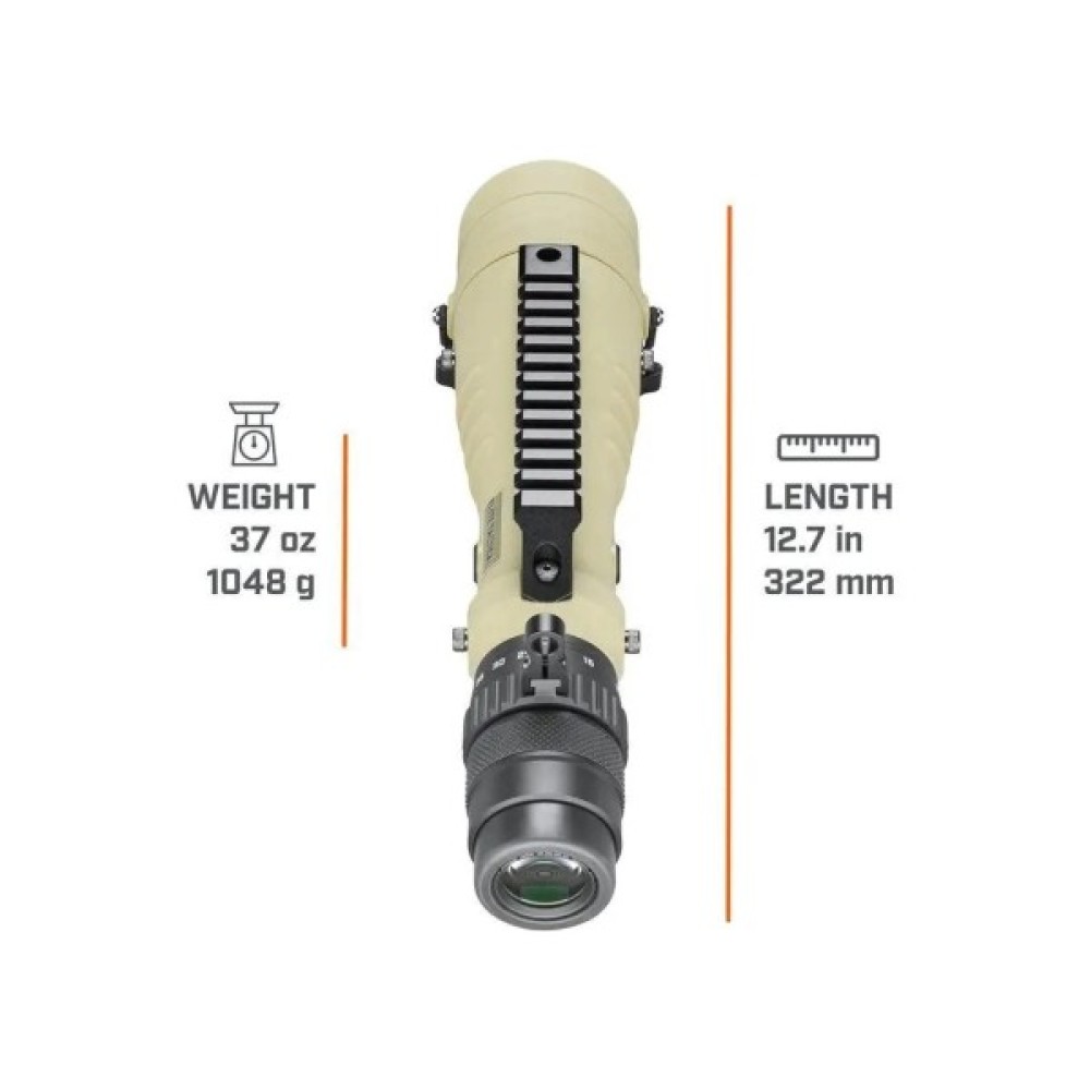 Прилад має регульоване оптичне збільшення – від 8х до 40х (для зручності та плавності регулювання до комплекту входить зручний важіль регулювання збільшення), великий об'єктив 60 мм та високоякісну оптичну систему, яка включає в себе низькодисперсійне скло ED Prime, призми з преміального скла BAK4 та лінзи з повним багатошаровим просвітленням (Fully multi-coated). Така комбінація забезпечує насичену та різку картинку з мінімальними оптичними викривленнями.