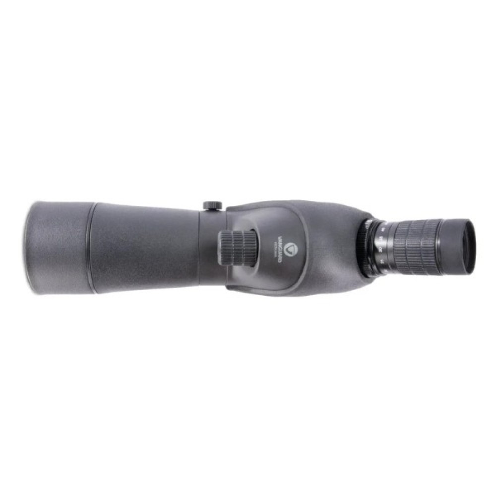 І в першу чергу - це комплектація штативом. У той час як більшість навіть іменитих виробників комплектують свої труби недорогими однотипними штативами з регулюванням в одній площині, підзорна труба Vanguard Vesta 560A 15-45x60/45 WP має преміальний двосекційний настільний штатив Vanguard VS-82 з центральною висувною штангою. 2D головка штативу регулюється по двом вісям, має стандартну резьбу чверть дюйма і підпружинений стопор для надійності кріплення. Завдяки цьому підзорна труба відразу ж готова до використання і відмінно підходить як для контролю мішеней і точності стрільби, так і для спостережень пейзажів з капота автомобіля. Зручно те, що штатив компактно розміщений в загальному чохлі разом з підзорної трубою.