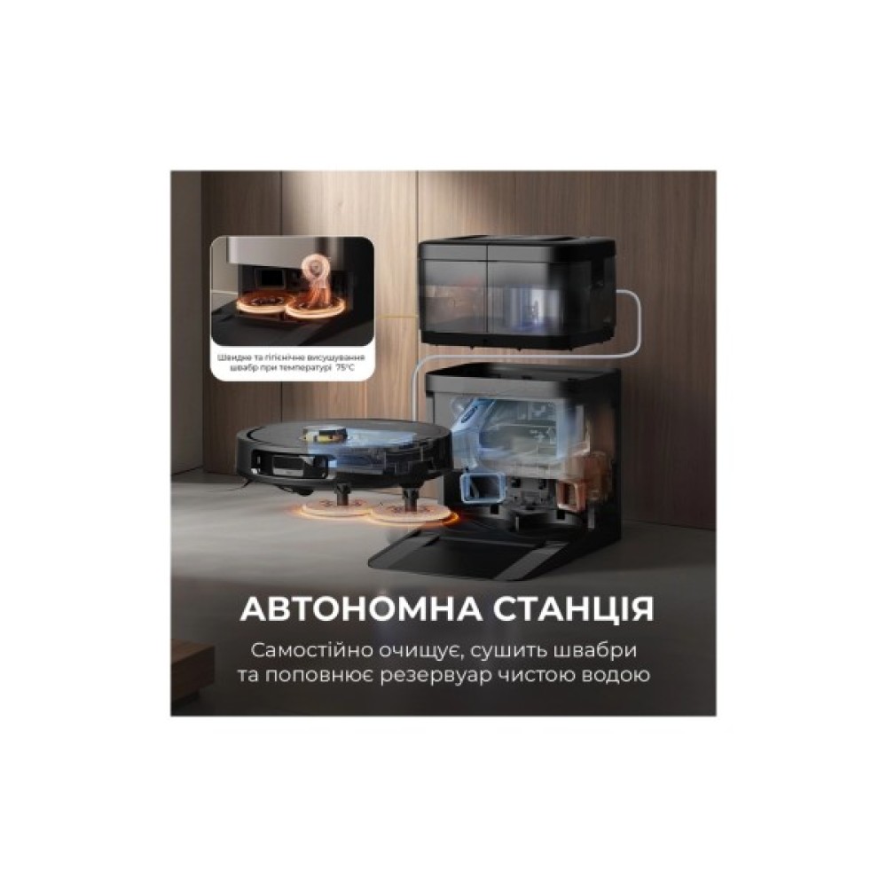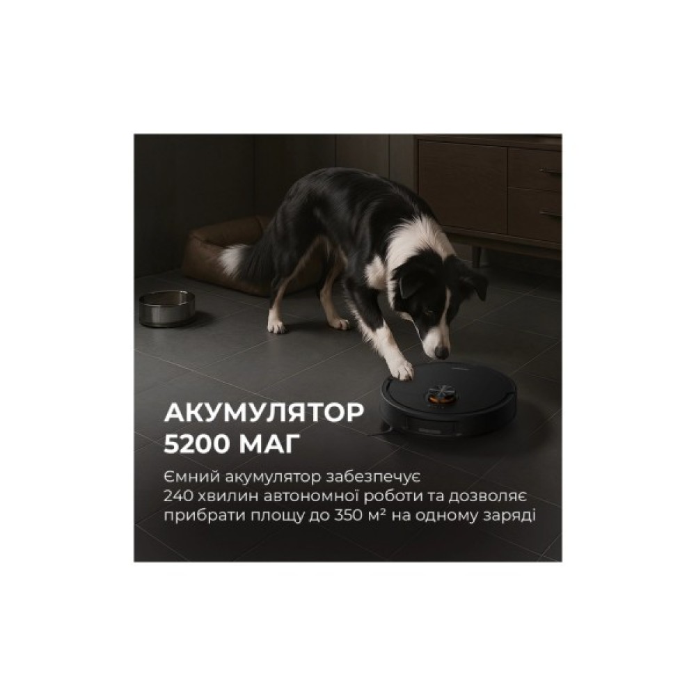 Особливості побудова карти приміщення; вибір режиму руху; посилення потужності на килимах; розпізнавання перешкод; уникнення килимів під час вологого прибирання