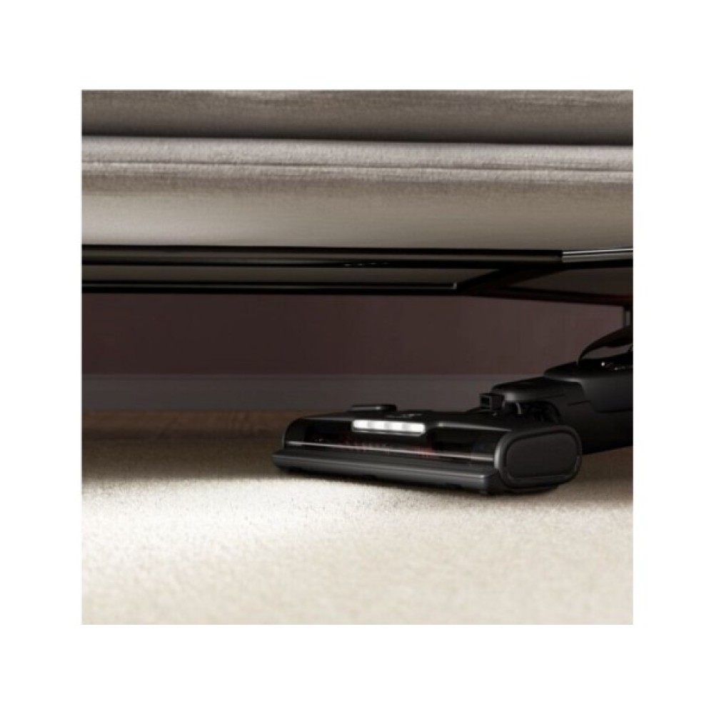 Світлодіодне підсвічування щітки дозволяє легко виявляти пил навіть у темних куточках, а три рівні потужності з функцією запам'ятовування забезпечують індивідуальний підхід до кожного завдання прибирання. Це дозволяє легко очистити різні види покриттів, від килимів до твердих поверхонь, без необхідності заміни насадки.