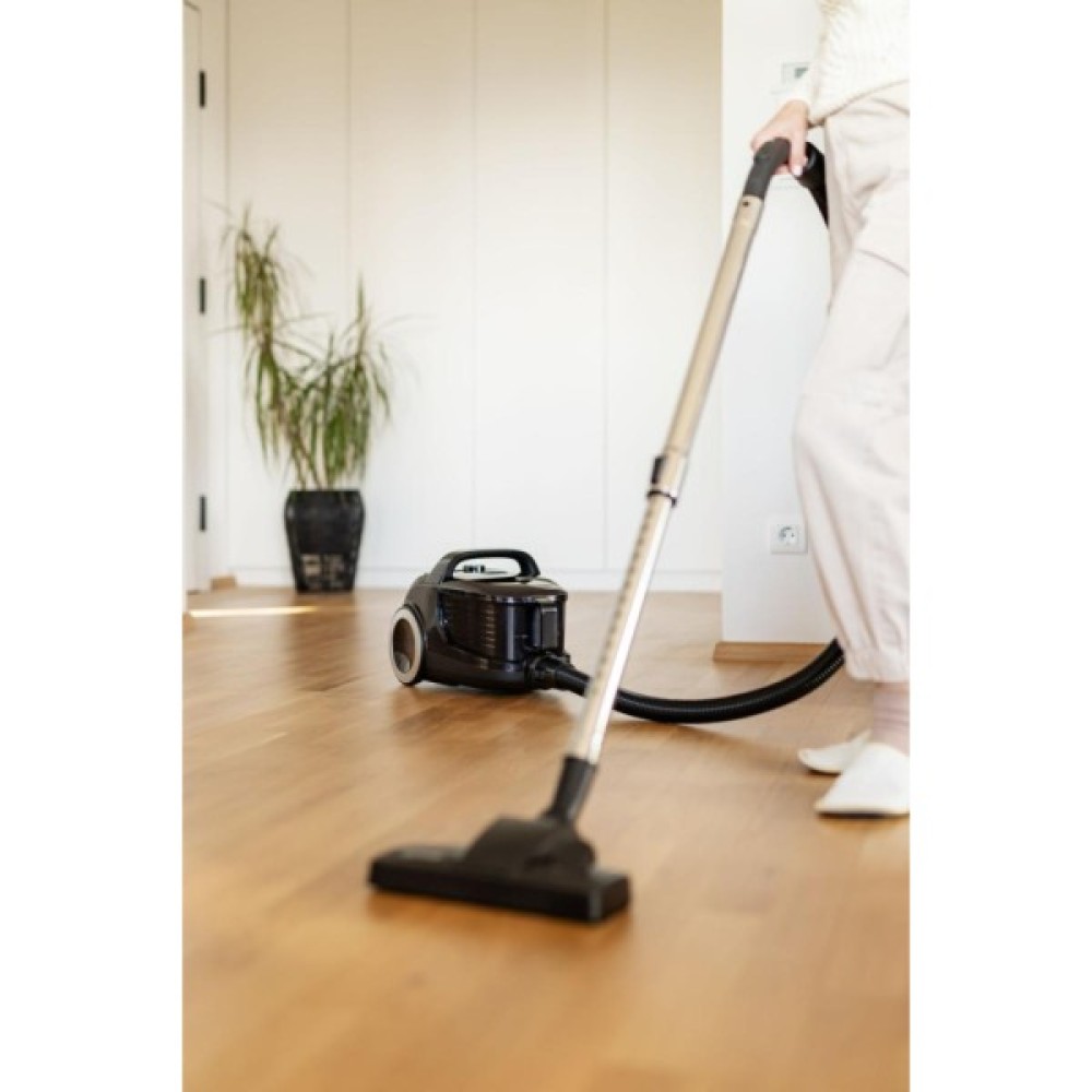 При вазі в 6.9 кг, цей пилосос є легким для транспортування, тому ви можете без зусиль переміщати його між кімнатами. З рівнем шуму 76 дБ, він працює досить тихо, що знижує дискомфорт під час тривалого прибирання.