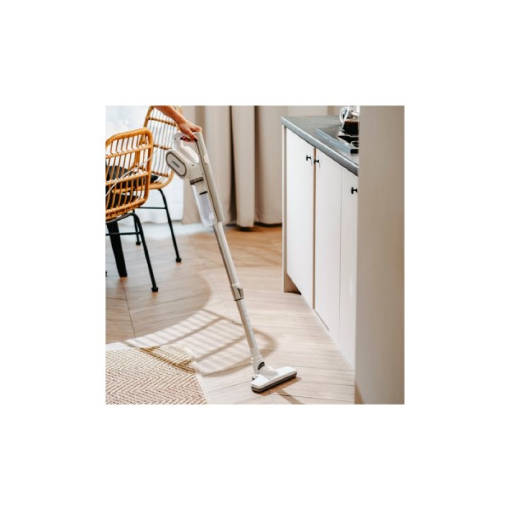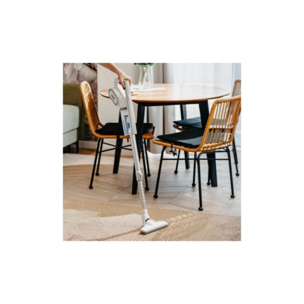 Контейнер для сміття об'ємом 0,5 л легко знімається для очищення. Циклонна технологія з 2-ступінчастою системою фільтрації видаляє до 95% частинок пилу й алергенів розміром понад 15 мікронів та зводить до мінімуму їх проникнення назад у приміщення.