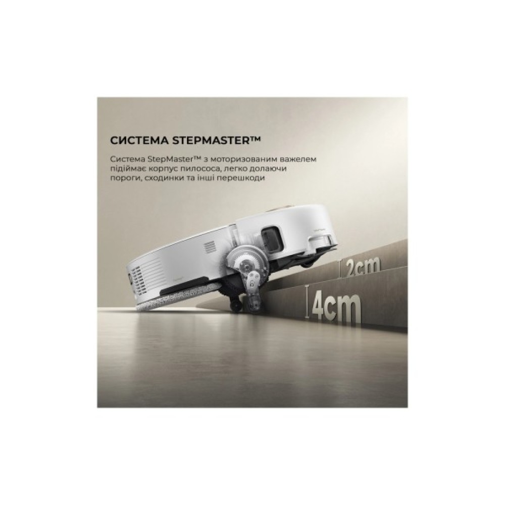 Передова технологія DuoSolution забезпечує потрійний механізм проти заплутування волосся й потужність всмоктування до 24000 Па. Вбудована функція OmniDry та система StepMaster з роботизованими висувними ніжками дозволяють Mova V50 долати перешкоди у вигляді порогів чи дверних напрямних до 6 см висотою, забезпечуючи прибирання усіх куточків вашого будинку.