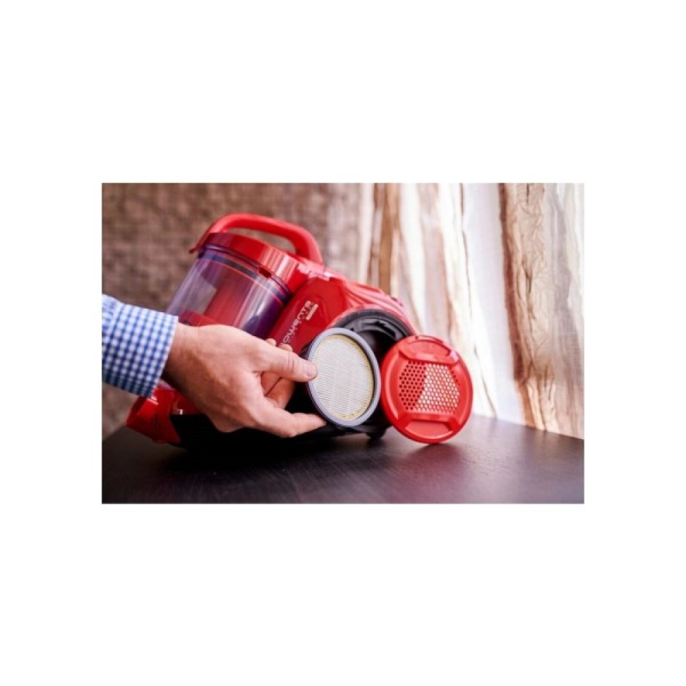 Цей пилосос має потужність 750 Вт, що забезпечує високу продуктивність без зайвих витрат електроенергії. Його робочий радіус складає 7,5 м, а довжина шнура в 5,6 м дозволяє безперешкодно пересуватися по всій кімнаті. Ви не будете обмежені у виборі приміщень для прибирання, адже мобільність пилососа обіцяє комфортне використання в будь-яких умовах.