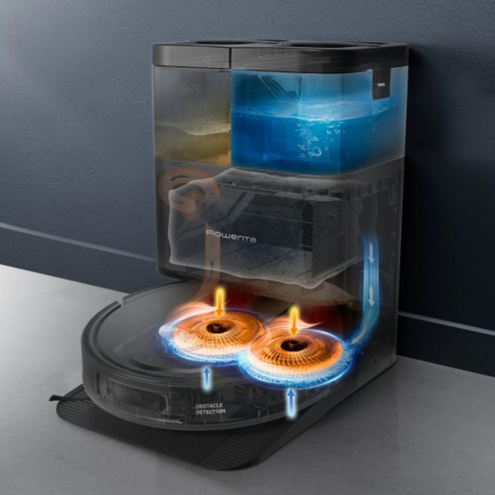 Ще однією важливою перевагою Rowenta RR95A5E0 є станція автовивантаження сміття з об'ємом 4,5 л, що дозволяє значно зменшити частоту ручного очищення пилозбірника. Резервуар для чистої води на 3 літри, функція автоматичного прання насадок та сушіння швабри гарячим повітрям роблять цей пилосос ще комфортнішим у використанні.