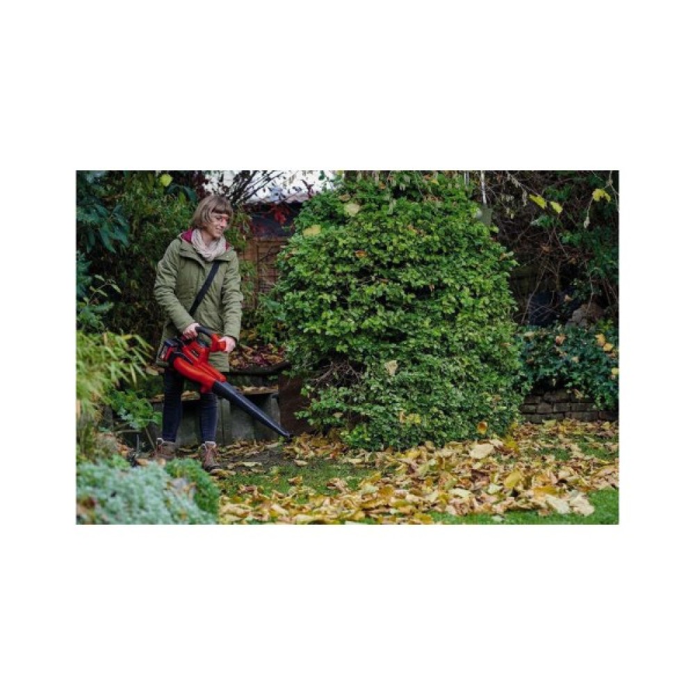 Акумуляторний садовий пилосос Einhell GE-LB 36/230 Li E-Solo зручний в обігу і простий у використанні, його можна використовувати поза домом і в саду. Цей садовий пилосос працює від двох 18 В акумуляторів і є пристроєм сімейства Einhell Power X-Change. Акумулятор і зарядний пристрій Power X-Change можуть використовуватися для всіх пристроїв сімейства Power X-Change. Пристрій має в комплекті дві окремі трубки для видування і всмоктування, які можна замінювати без додаткових інструментів. Об’ємний м’який матеріал, такий як листя і трава, можна подрібнювати до 1/10 свого початкового розміру за допомогою інтегрованого міцного і зносостійкого подрібнювача. Основна антивібраційна рукоятка має м'які накладки для зручності роботи, а регульована додаткова рукоятка дає вам впевнену керованість під час роботи. Електронне регулювання швидкості дозволяє регулювати інтенсивність всмоктування і видування. Вікно в мішку для сміття дозволяє відразу побачити, коли мішок повний. Акумуляторний садовий пилосос GE-LB 36/230 Li E-Solo поставляється зі зручним ременем безпеки, який розподіляє навантаження на Ваше тіло для запобігання втоми під час роботи. Він також має регульовані по висоті колеса для полегшення роботи. Поставляється без акумуляторів і зарядного пристрою, вони доступні окремо.