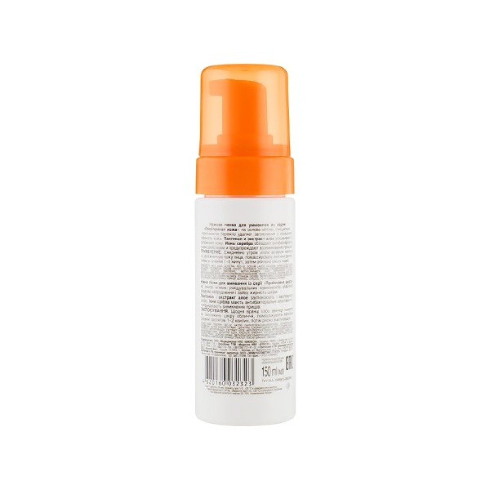 Пінка зручна у застосуванні, достатньо всього лише невелику її кількість нанести на ватний диск і протерти обличчя та шию. До складу продукту входять іони срібла, відомі своїми антибактеріальними властивостями. Вони допомагають вирішити проблеми прищів й акне. Пінка для вмивання не пересушує шкіру, не викликає подразнень й алергії, залишає відчуття чистоти та свіжості.
