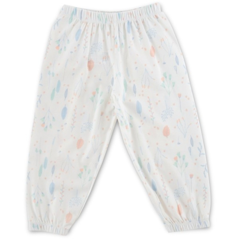 • Чудова, затишна та комфортна турецька дитяча трикотажна тоненька піжама (без утеплювача), приємного кремового кольору з пастельними рослинними малюночками по всій поверхні: кофточка + штани.