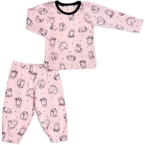 - Чудова, затишна, симпатична та комфортна турецька дитяча трикотажна піжама (без утеплювача), приємного ніжно-рожевого кольору, прикрашена малюнками гарненьких котиків.