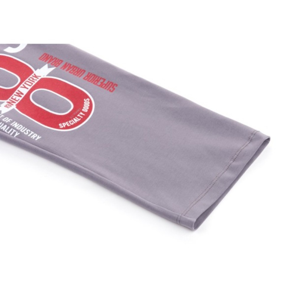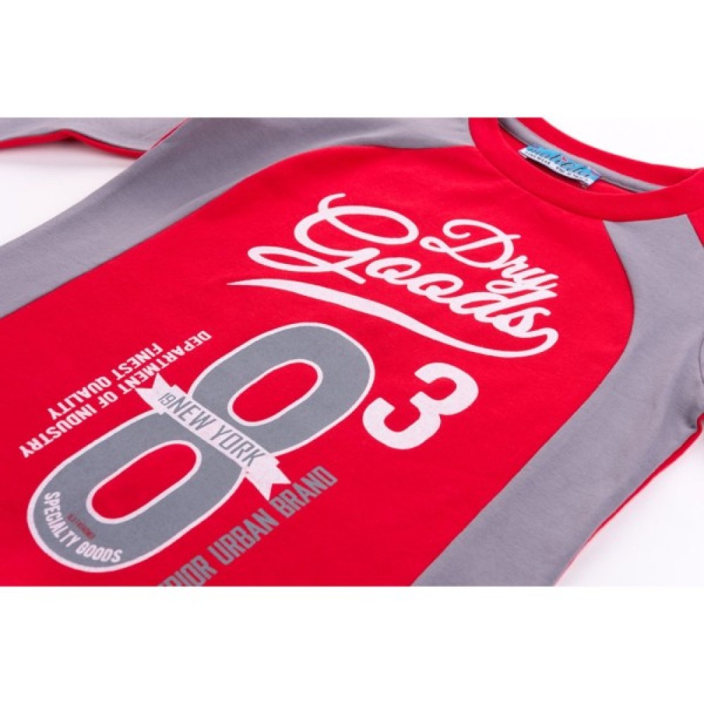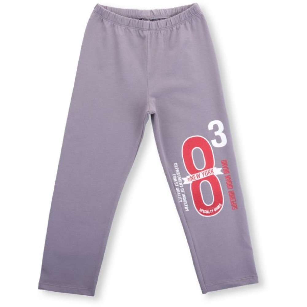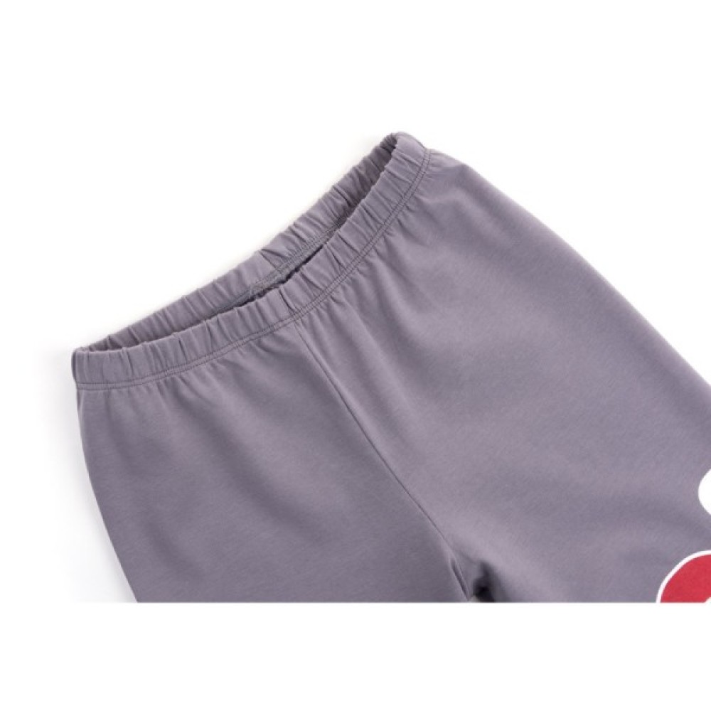 Джемпер прямого силуету, ззаду – однотонного, красивого червоного кольору, а спереду – червоний колір вдало поєднується зі стильним принтом і вставками сірого кольору. Кругла горловина оброблена м'якою подвійною трикотажною резинкою. Вільні, прямі, трохи завужені штани сірого кольору, без манжет і пояс під гумку, забезпечать оптимальну посадку по фігурі. Комплект прикрашений об'ємними стильними принтами на джемпері і таким само, тільки контрастного кольору, на штанях.