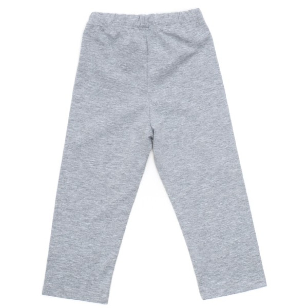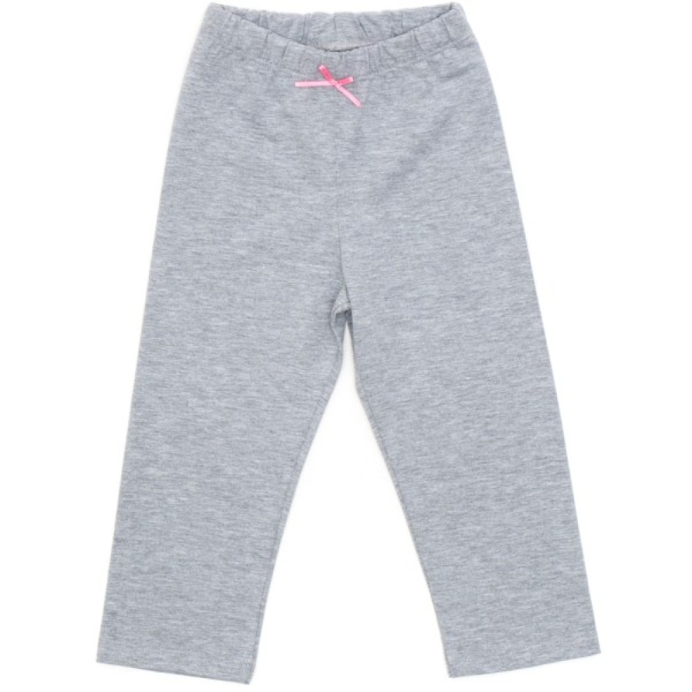Прямі штани сірого меланжевого кольору, вільного крою, без манжет. Прикрашені на поясі милим атласним бантиком.