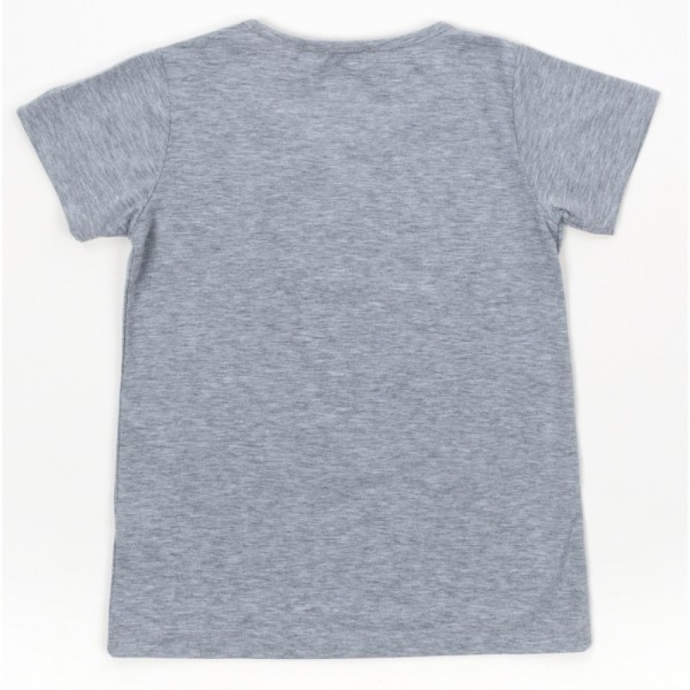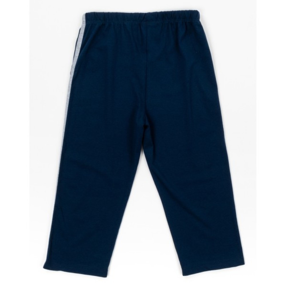 - Чудова, затишна та комфортна легка турецька трикотажна піжама для хлопчика: сіра футболочка та темно-сині бриджі.