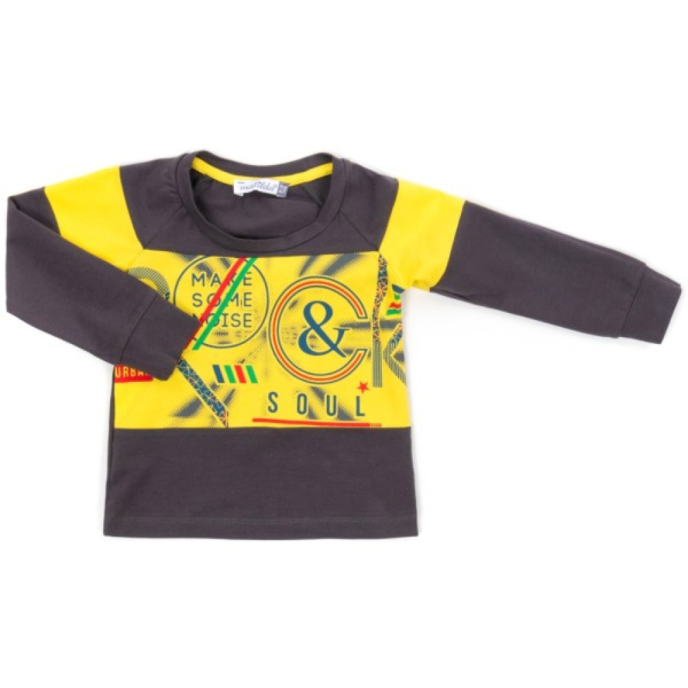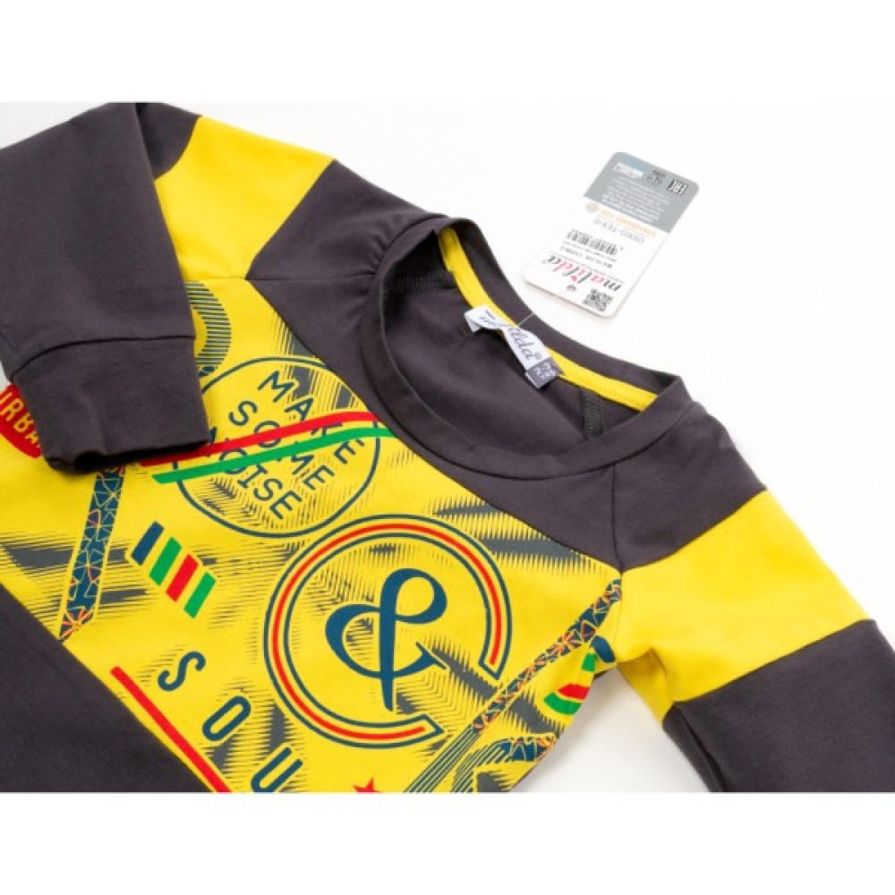 Кофта прямого силуету з довгими рукавами - «реглан» на манжетах з основного трикотажу. Оздоблена стильним об'ємним яскраво - жовтим принтовим малюнком.