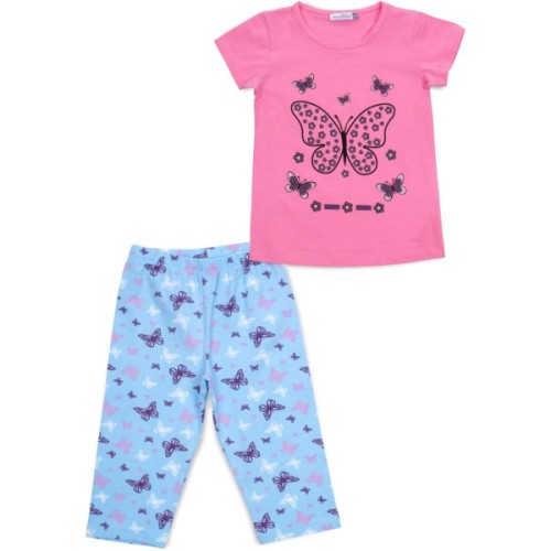 Трикотажна піжама з метеликом для дівчаток (кофточка + капрі).
