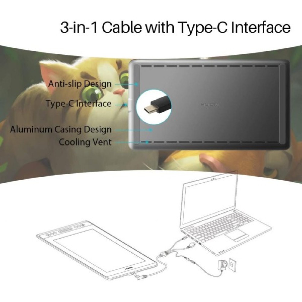 Крім підключення USB Type-C до HDMI, Kamvas 13 також підтримує підключення Type-C до Type-C. Користувачі можуть легко підключити ноутбук з підтримкою Type-C до Kamvas 13 без використання адаптера Type-C - HDMI.