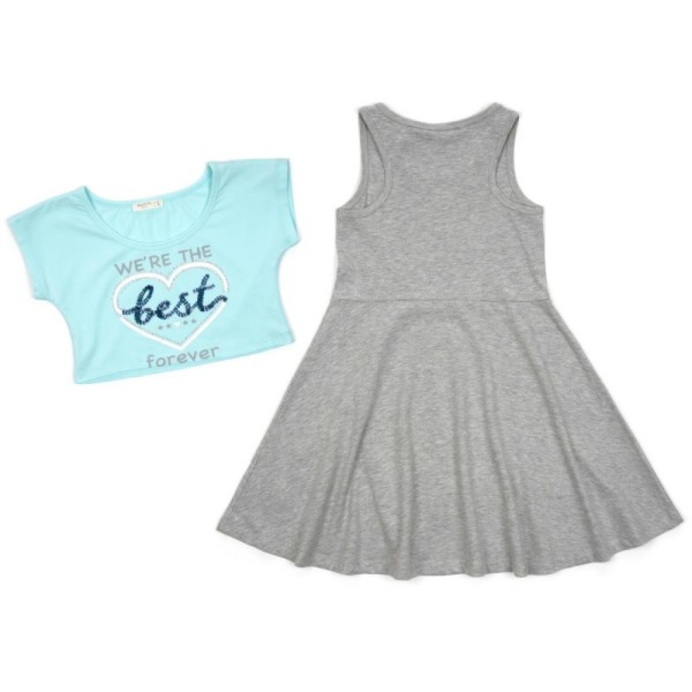 Ефектний, дуже модний комплект - двійка в стилі спортивний шик: сукня + топ. Виконаний з якісного турецького трикотажу, з додаванням невеликого % еластану для підтримки форми.