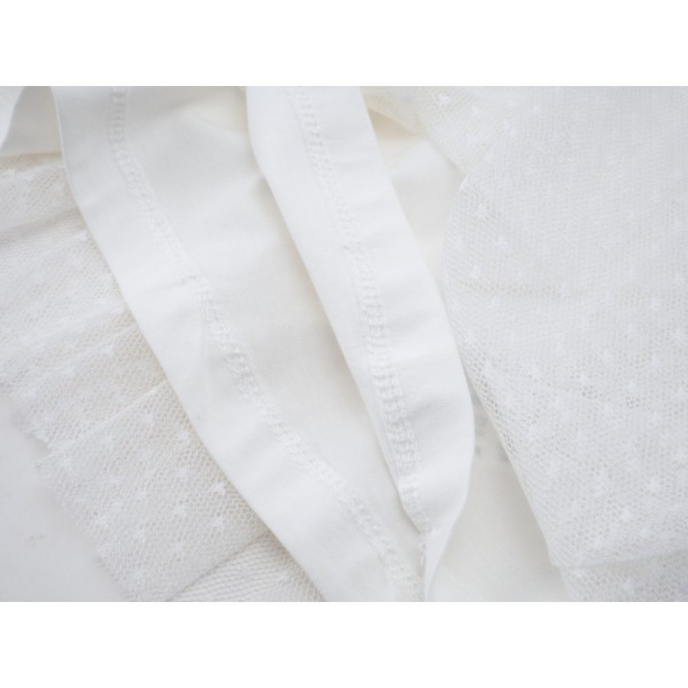 • Перед верху сукні – фатин + трикотаж, спинка – трикотаж, спідниця – м'який, ніжний фатин + підкладка з бавовняного трикотажу.
