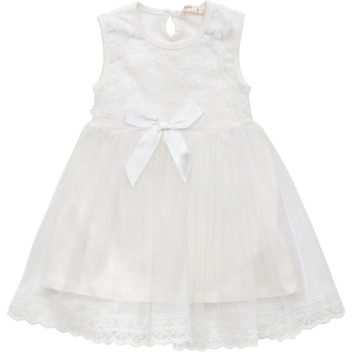 Чарівна, нарядна сукня без рукавів, з легкою фатиновою спідницею прикрашеною ніжним мереживом - відмінний варіант для будь-якого урочистого випадку.