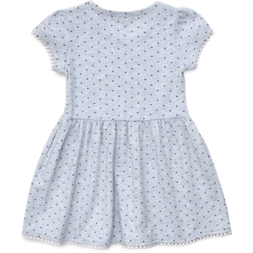 - Відмінна, зручна меланжева модель, відрізна по лінії талії, виконана в приємному світло-сірому кольорі з дрібними чорними зірочками по всій поверхні сукні.