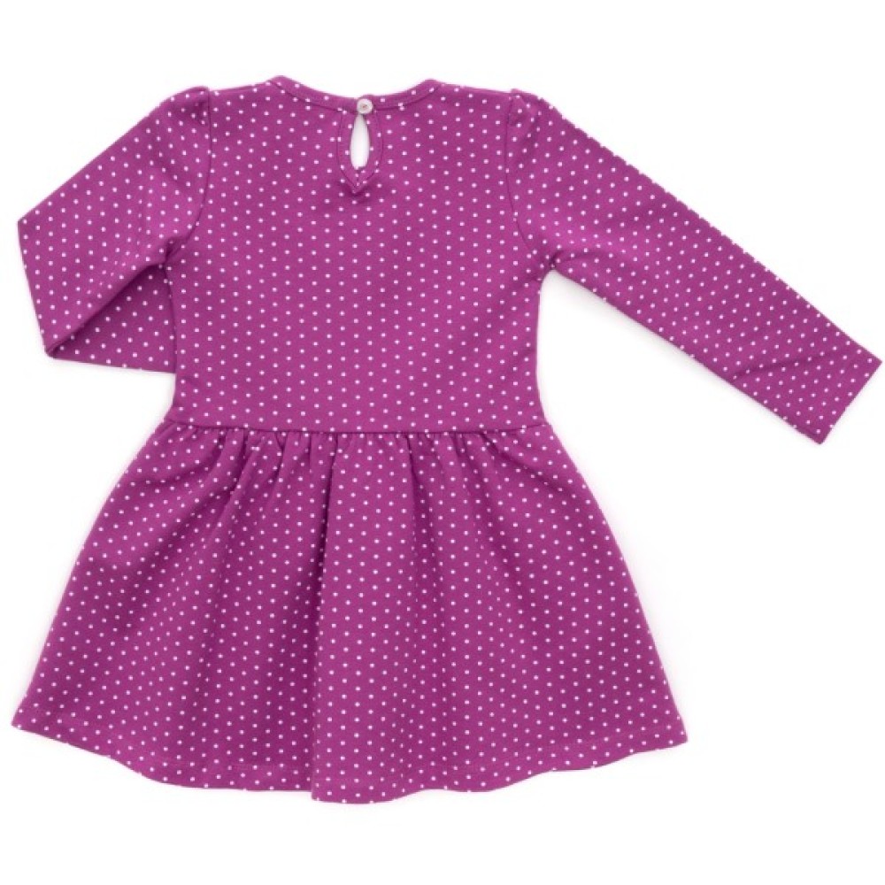 • Ефектна, щоденна трикотажна сукня з довгими рукавами, приємного бузкового кольору в невеличкі горошки для вашої донечки.