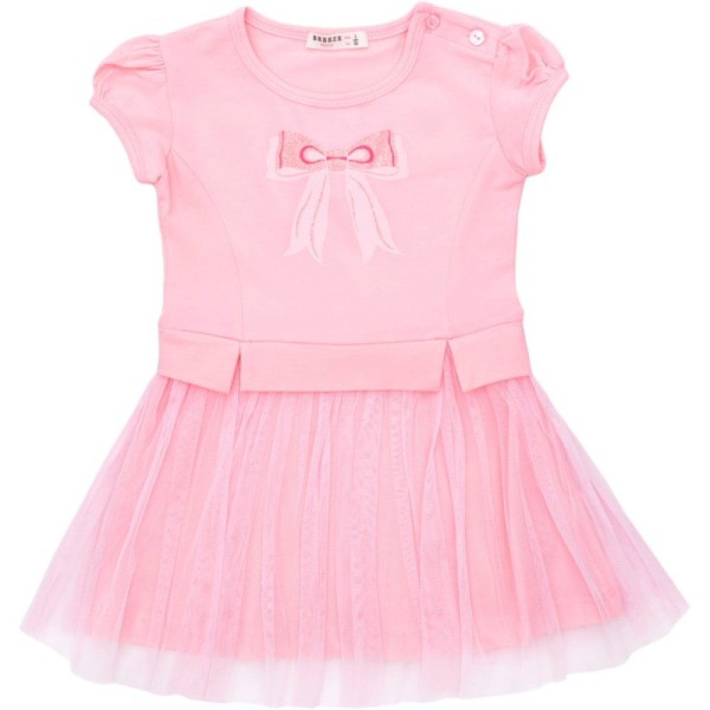• Спереду верх сукні оздоблений акуратним ніжним принтовим малюнком бантика з додаванням сріблястих глітерних блискіток.