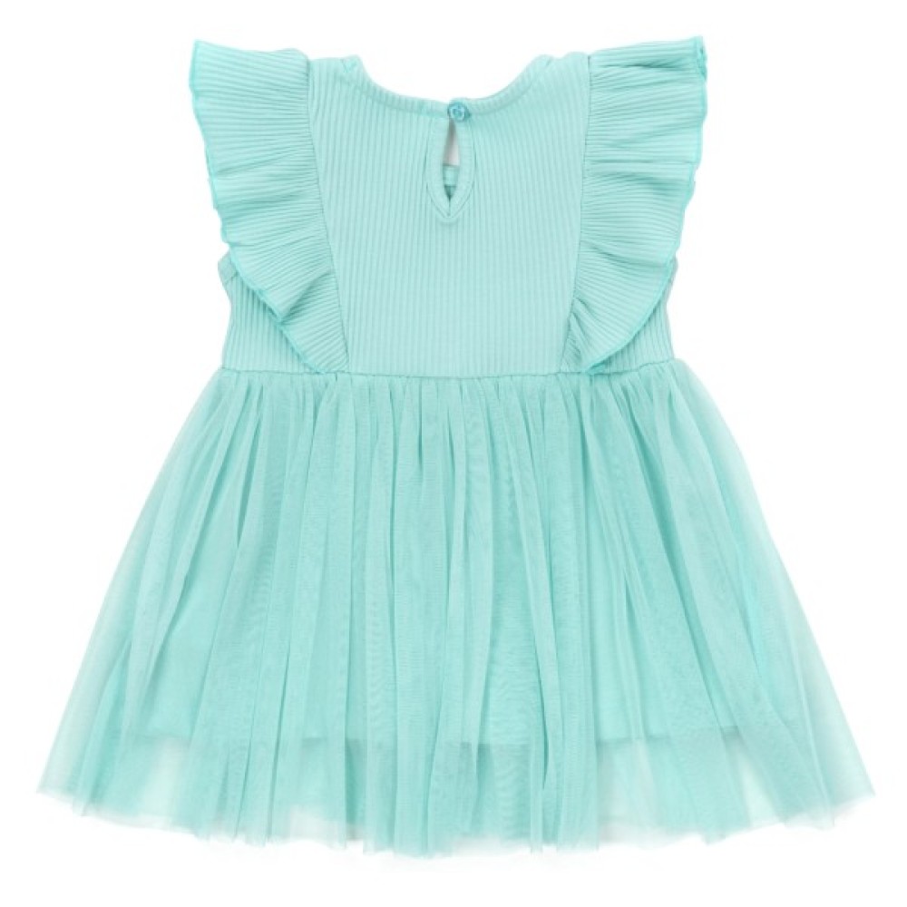 - Симпатична, мила трикотажна сукня без рукавів, з чудовими воланами та легкою фатиновою спідничкою для вашої улюбленої модниці.