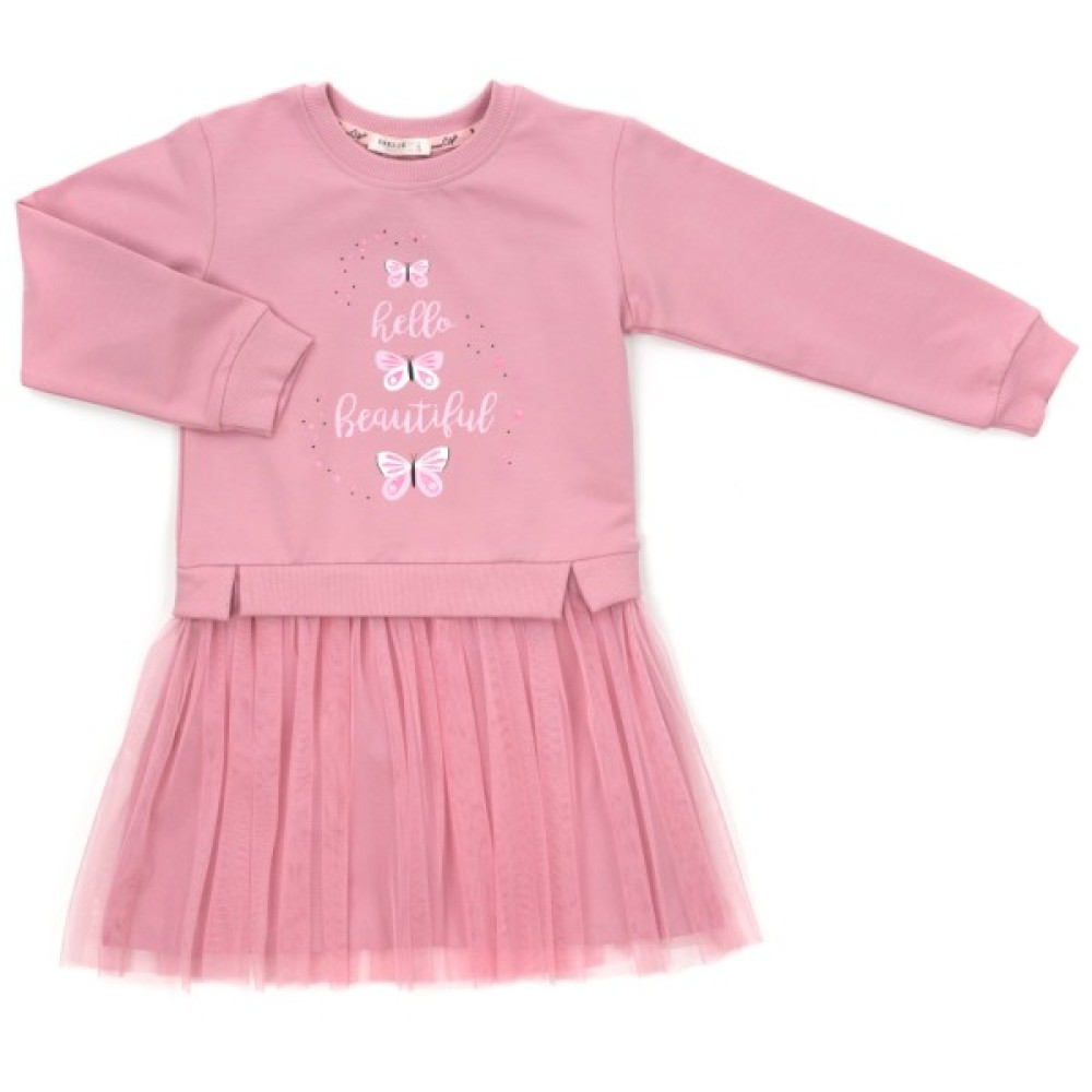 Затишна трикотажна сукня з метеликами та фатиновою спідницею.