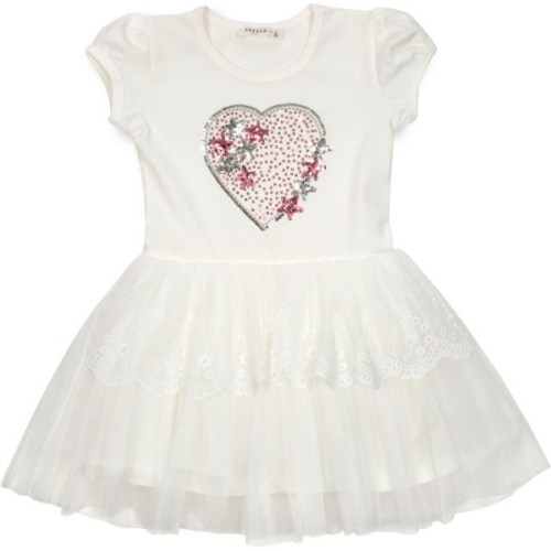 Дуже мила, нарядна сукня кремового кольору з яскравим серцем з блискучих пайеток і мереживною баскою для юної модниці!