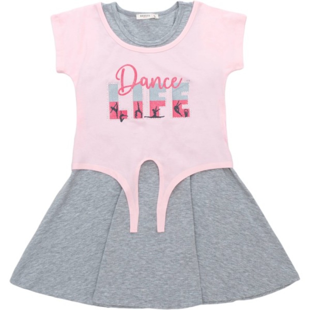 • Топ- укорочена широка футболка рожевого кольору з тонкого трикотажу, з суцільнокроєним коротким рукавом і трохи поглибленим вирізом горловини. Спереду прикрашений стильним принтовим написом «Dance LIFE» зі стразами, що переливаються.