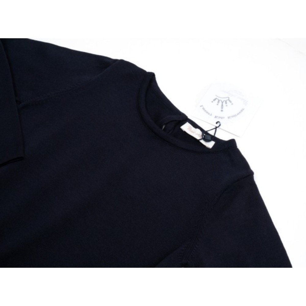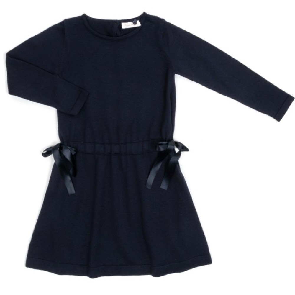 • Чудова, стильна, симпатична сукня темно-синього кольору з тонкого в'язаного трикотажу з атласними стрічками - відмінний, універсальний варіант на будь-який випадок для вашої модниці.
